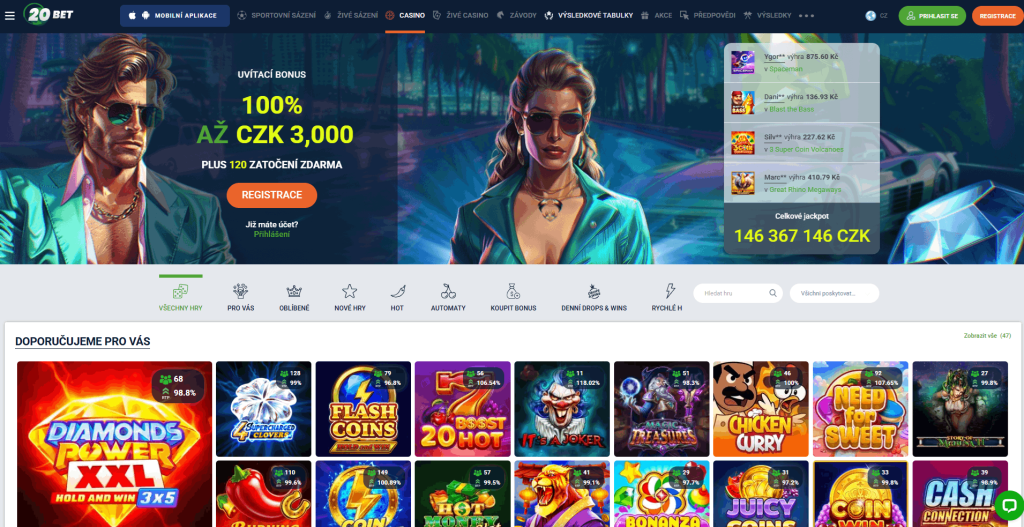 Pokud hledáte vyvážené krypto kasino, 20bet je pro mě dlouhodobě jednou z nejstabilnějších voleb. Tato platforma kombinuje profesionální sázkovou kancelář s plnohodnotným kasinem. Moje osobní testování potvrdilo, že proces registrace i vkladu je bleskový, ať už používáte běžnou kartu nebo digitální aktiva. Jejich tmavý režim je šetrný k očím při delším hraní, což oceňuji zejména v noci.