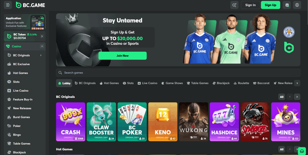 BC.GAME je v mých očích absolutní špičkou v kategorii nativních krypto platforem. Toto crypto casino online je známé svou inovativností a „untamed“ stylem. Fascinuje mě, jak platforma integruje vlastní krypto tokeny a nabízí hry, které jsou prokazatelně férové (provably fair). Celé prostředí působí velmi technologicky a je vidět, že cílí na uživatele, pro které je bitcoin běžnou součástí života.