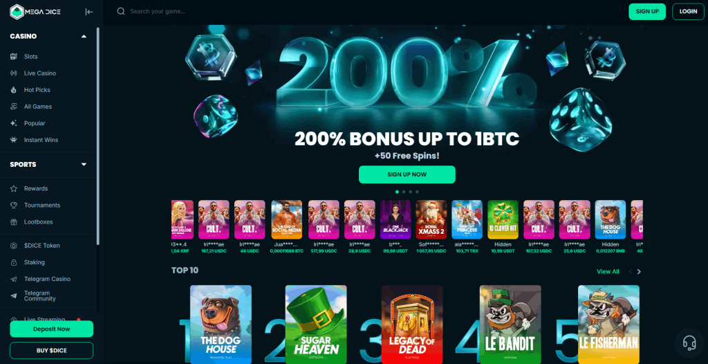 Mega Dice je projekt, který mě fascinuje svou integrací s aplikací Telegram. Jde o komplexní ekosystém, kde krypto kasina potkávají moderní sociální sítě. Platforma má temný, profesionální vzhled a kromě tisíců her nabízí i plnohodnotné sportovní sázky. Zjistil jsem, že jejich vlastní token $DICE přináší držitelům zajímavé výhody a staking odměny, což je ve světě hazardu stále poměrně nový prvek.