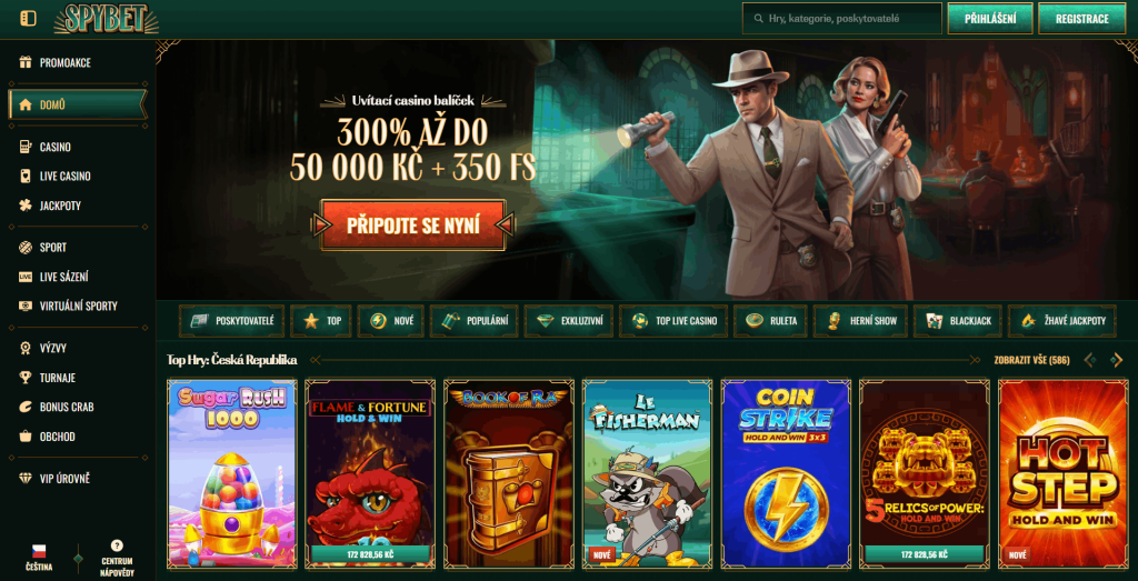 Spybet mě zaujal svým unikátním tématem tajných agentů a detektivů. Jako top crypto casino nabízí vizuální styl laděný do zeleno-zlaté kombinace, který působí luxusně a tajemně zároveň. Zjistil jsem, že Spybet exceluje zejména v šíři svých propagačních akcí, které zahrnují nejen kasinové hry, ale i sportovní sázení s různými vylepšeními kurzů.